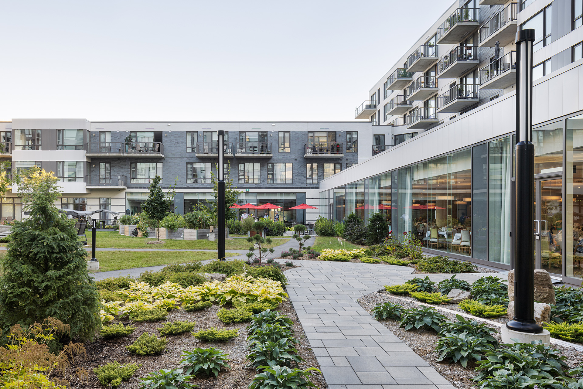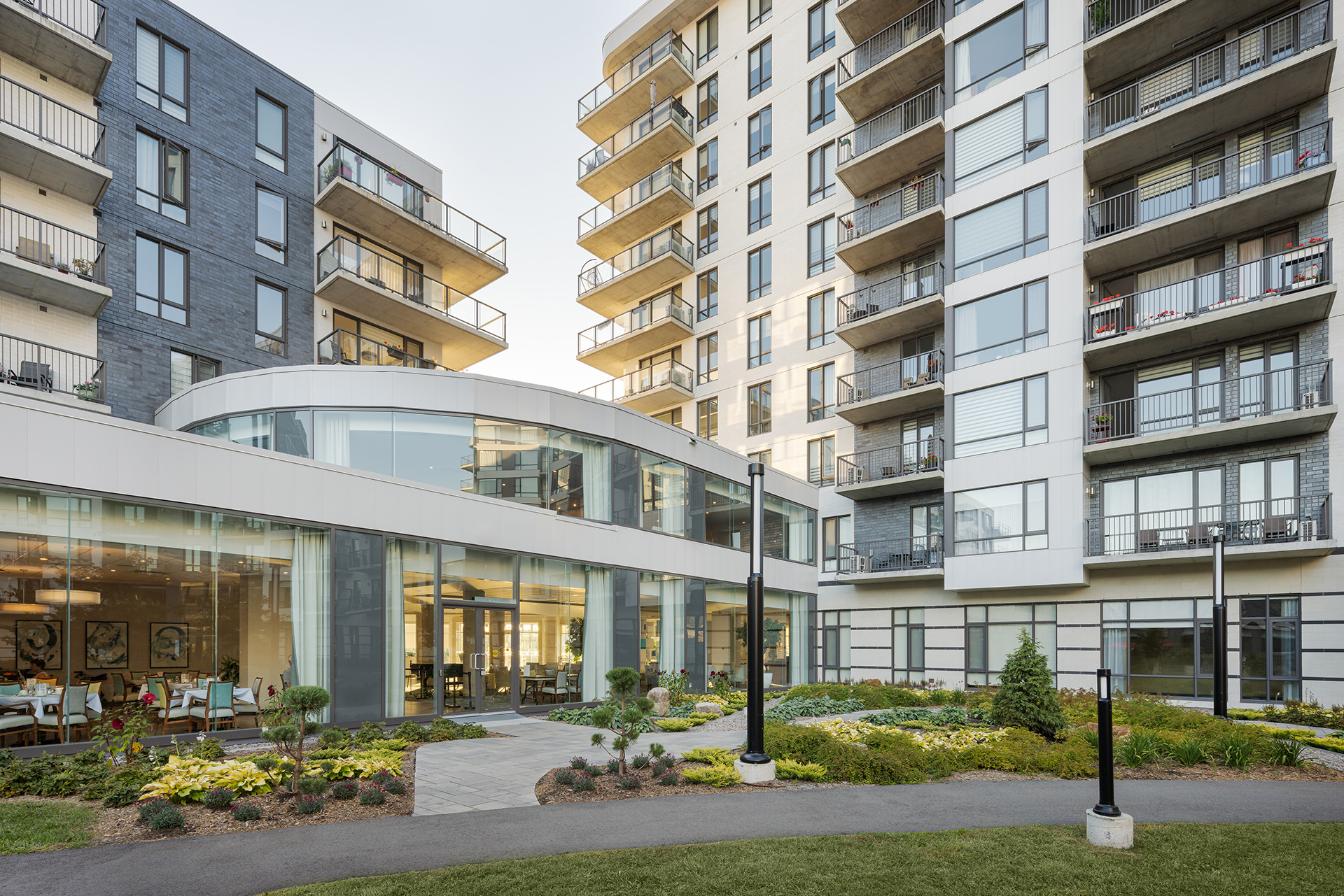 Ce complexe résidentiel pour personnes âgées offre un milieu de vie unique et de grande qualité, pensé pour une retraite épanouissante. Située à proximité immédiate d’un vaste éventail de commerces, de services et de loisirs, la résidence propose un cadre de vie exceptionnel aux aînés du secteur. Son architecture aux lignes harmonieuses et son design intérieur soigné, comprenant des aires communes et plusieurs salons chaleureux, assurent confort et convivialité. Des jardins privés aménagés autour de la résidence complètent cet environnement paisible et accueillant.