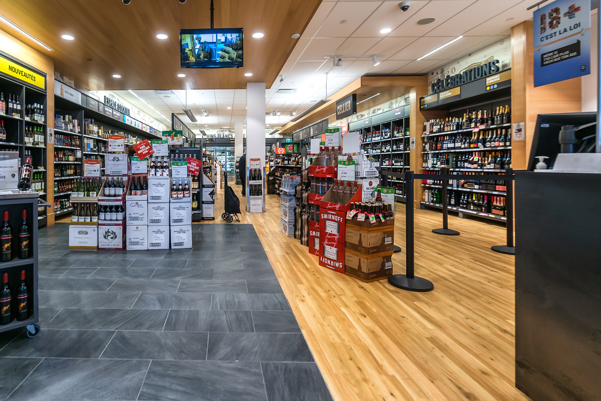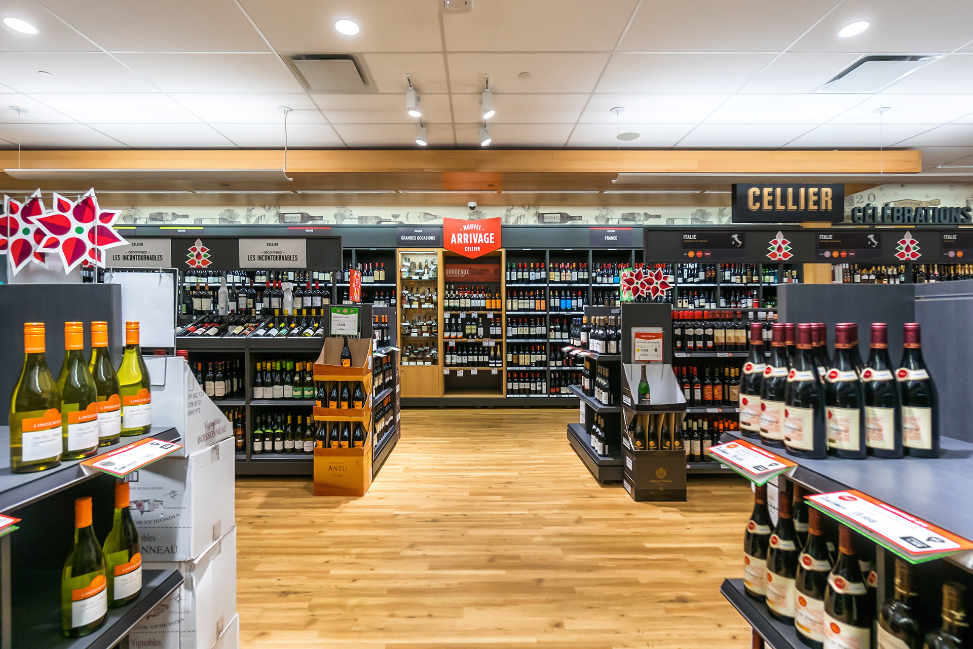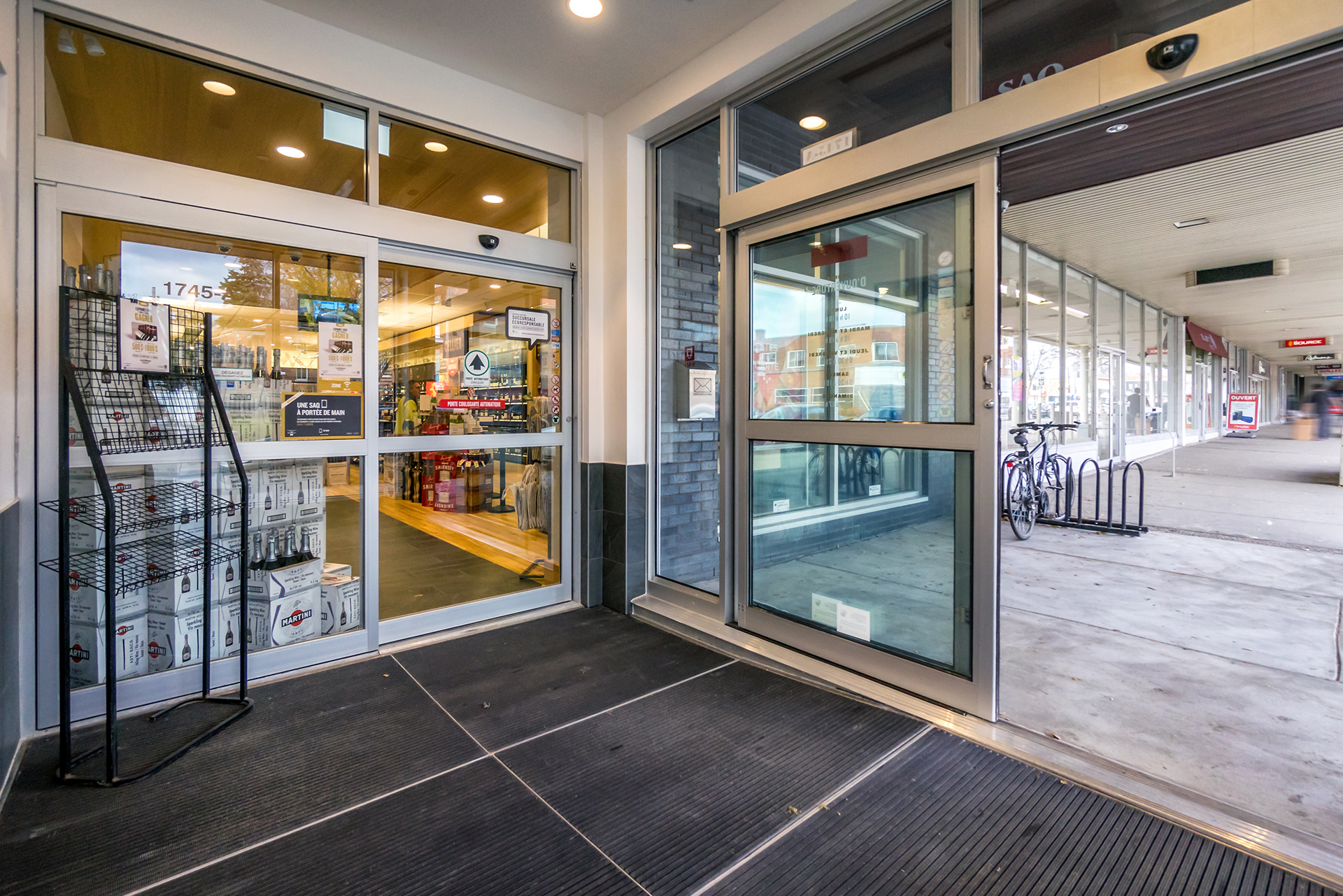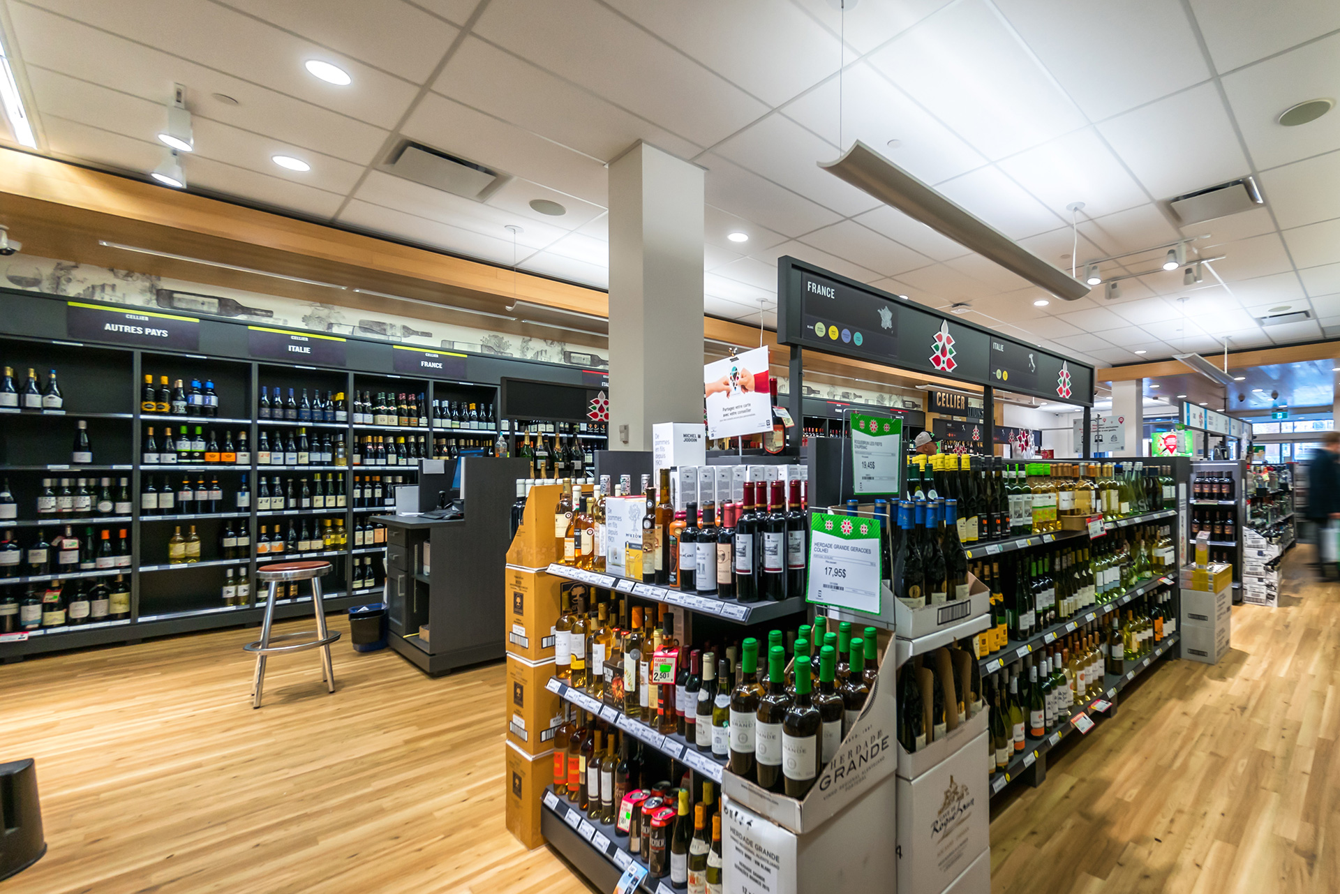 Réalisation de plusieurs succursales de la Société des alcools du Québec dans la région de Montréal et de la Rive-Nord. Il convient de souligner que la succursale du centre commercial Côte-Vertu, certifiée LEED Argent, a été livrée clé en main.